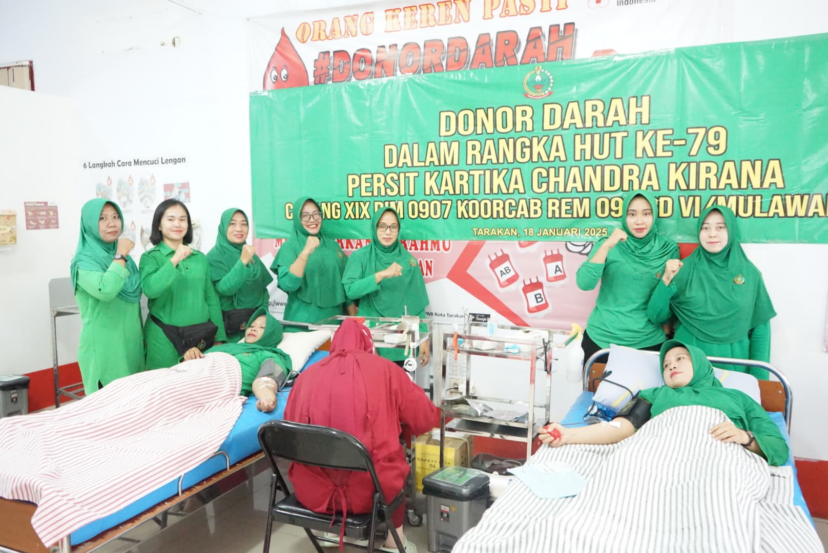 TARAKAN, TerasKaltara.id – Kegiatan Donor Darah dilakukan Persit KCK Cab XIX Dim 0907 Tarakan, menjelang HUT Persit Ke – 79 di PMI Kota Tarakan Jalan Pulau Irian Kelurahan Kampung 1 Skip, Kecamatan Tarakan Tengah, Sabtu (18/01/2025).