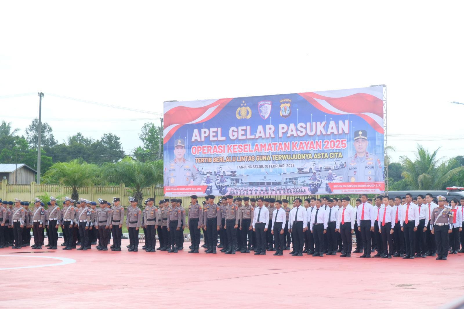 Apel Gelar dipimpin langsung Kapolda Kaltara Irjen Pol. Hary Sudwijanto, S.I.K, M.Si., turut hadir Gubernur Kaltara Drs. H. Zainal A. Paliwang, S.H., M.Hum., Wakil Ketua I DPRD Provinsi Kalimantan Utara H. M. Nasir, Dandim Bulungan Kol. Inf. Prasetyo Ari Wibowo, Irwasda Polda Kaltara Kombes Pol. Audy Alfrits Herman Manus, Pejabat Utama Polda Kaltara, Danbrigif 24 Bulungan Cakti Kolonel Inf. Toni Sri Hartanto, Wadan Denpom VI/3 Bulungan Mayor (CPM) Aliansyah, Sekretaris Dinas Kesehatan Kaltara Agus Suwandy, Kabid Lalulintas Dinas Perhubungan Provinsi Kalimantan Utara Ir. Aswandi, Kepala BPBD Provinsi Kalimantan Utara, Kasatpol PP Provinsi Kaltara, Kepala Jasa Raharja Kaltara, Kepala Senkom Kaltara, Para Undangan dan Peserta Apel Gelar Pasukan.