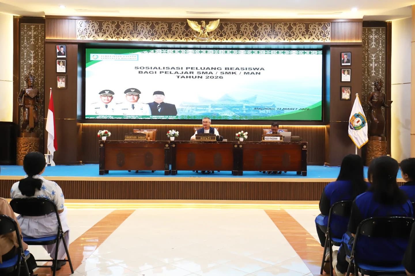 Kegiatan sosialisasi tersebut digelar pada Jumat (13/3/2026) di Ruang Laga Feratu, Kantor Bupati Malinau, dan diikuti oleh puluhan pelajar yang tampak antusias menyimak pemaparan mengenai berbagai peluang beasiswa yang disiapkan pemerintah daerah.