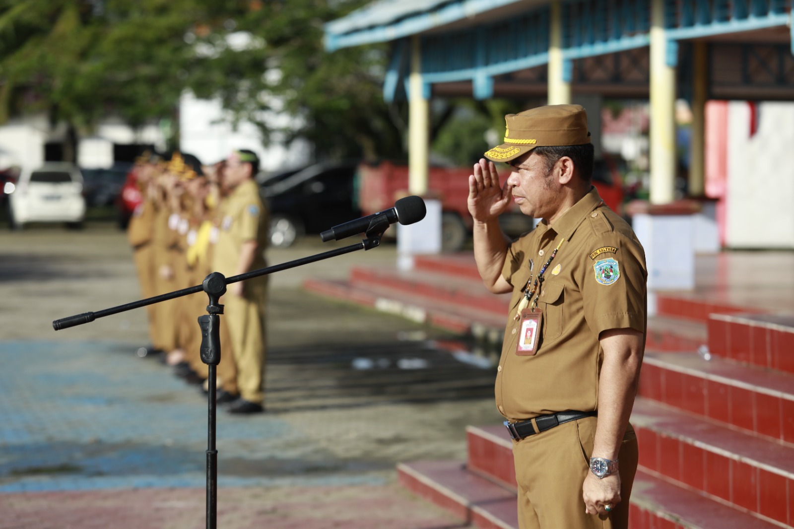 Penjabat (Pj.) Sekretaris Daerah Provinsi (Sekprov) Kalimantan Utara (Kaltara) Dr. Bustan, S.E., M.Si memimpin apel pagi gabungan di lingkup Pemerintahan Provinsi (Pemprov) Kaltara di Lapangan Agatis, Senin (15/12/2025).
