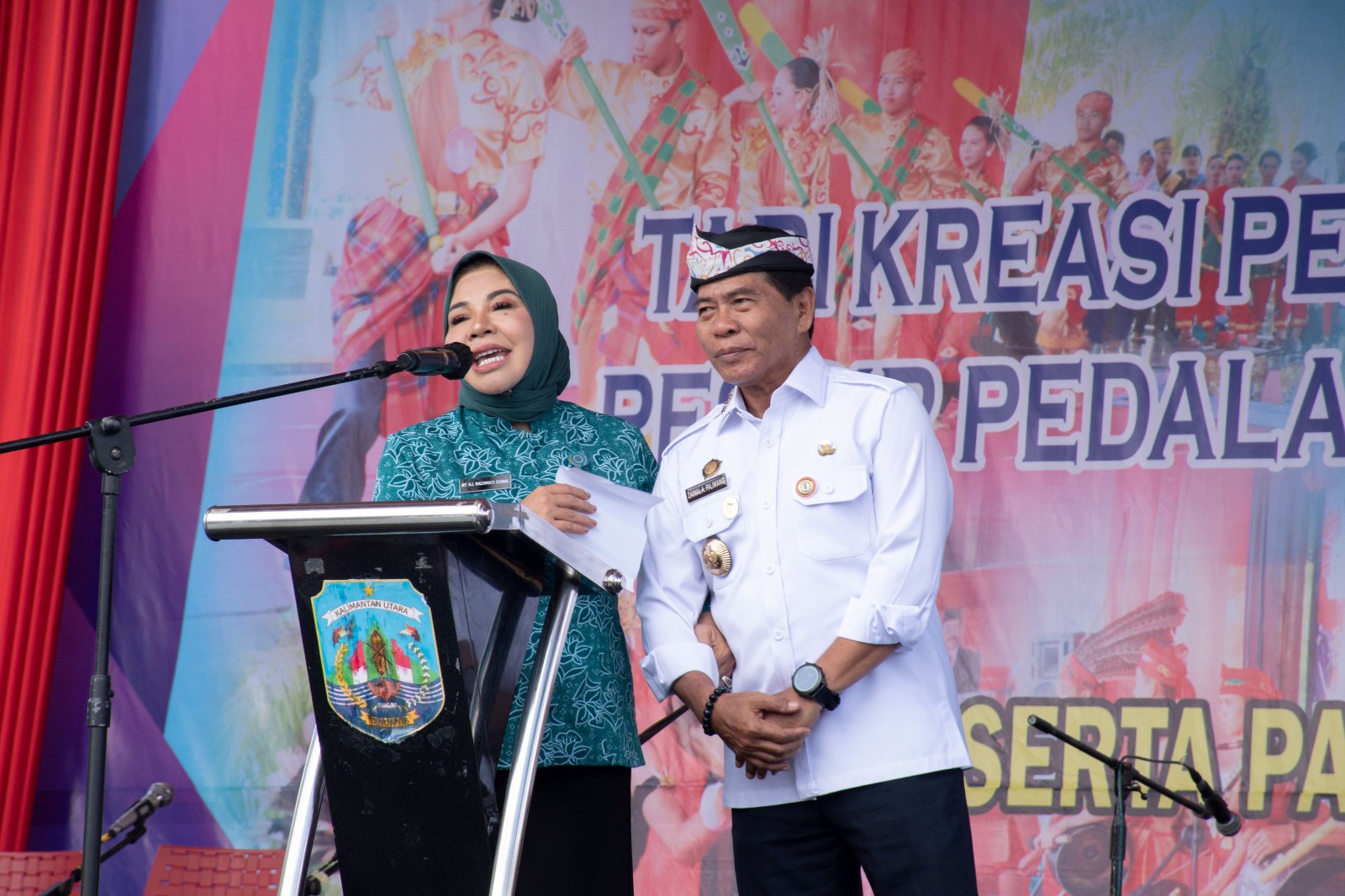 FESTIVAL TARI : Gubernur Kaltara, Drs H Zainal A Paliwang SH, M.Hum didampingi Ketua TP-PKK Kaltara Hj Rahmawati, SH menghadiri Festival Tari, Musik Kreasi Pesisir dan Pedalaman di SMK Negeri 1 Tanjung Selor, Rabu (18/10/2023).