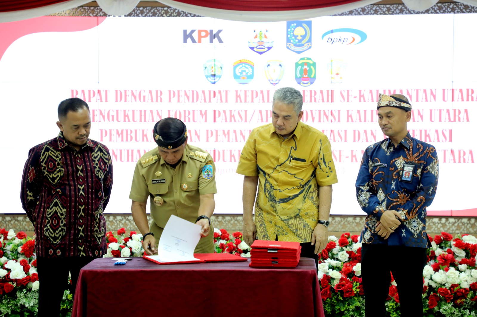 Rapat tersebut melibatkan kepala daerah dari berbagai wilayah di Provinsi Kaltara. Acara ini turut dirangkai dengan acara Pengukuhan Forum Penyuluh Anti Korupsi (Paksi)/Ahli Pembangun Integritas (API) Provinsi Kaltara, serta Pembukaan dan Pemantauan, Evaluasi dan Verifikasi Pemenuhan Data Pendukung Monitoring Center for Prevention (MCP) KPK Tahun 2023 se-Kaltara.