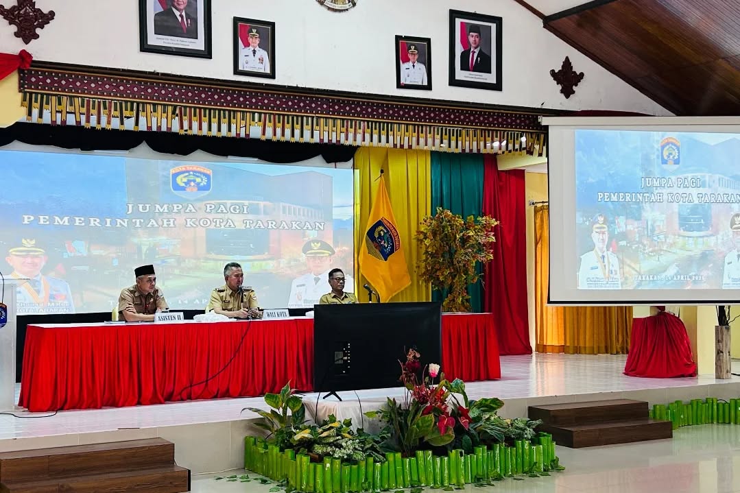 TERASKALTARA.ID, TARAKAN – Pemerintah Kota Tarakan kembali melaksanakan kegiatan rutin Jumpa Pagi pada April 2026 sebagai upaya memperkuat koordinasi, disiplin, serta evaluasi kinerja di lingkungan pemerintahan, Selasa (/4/26).