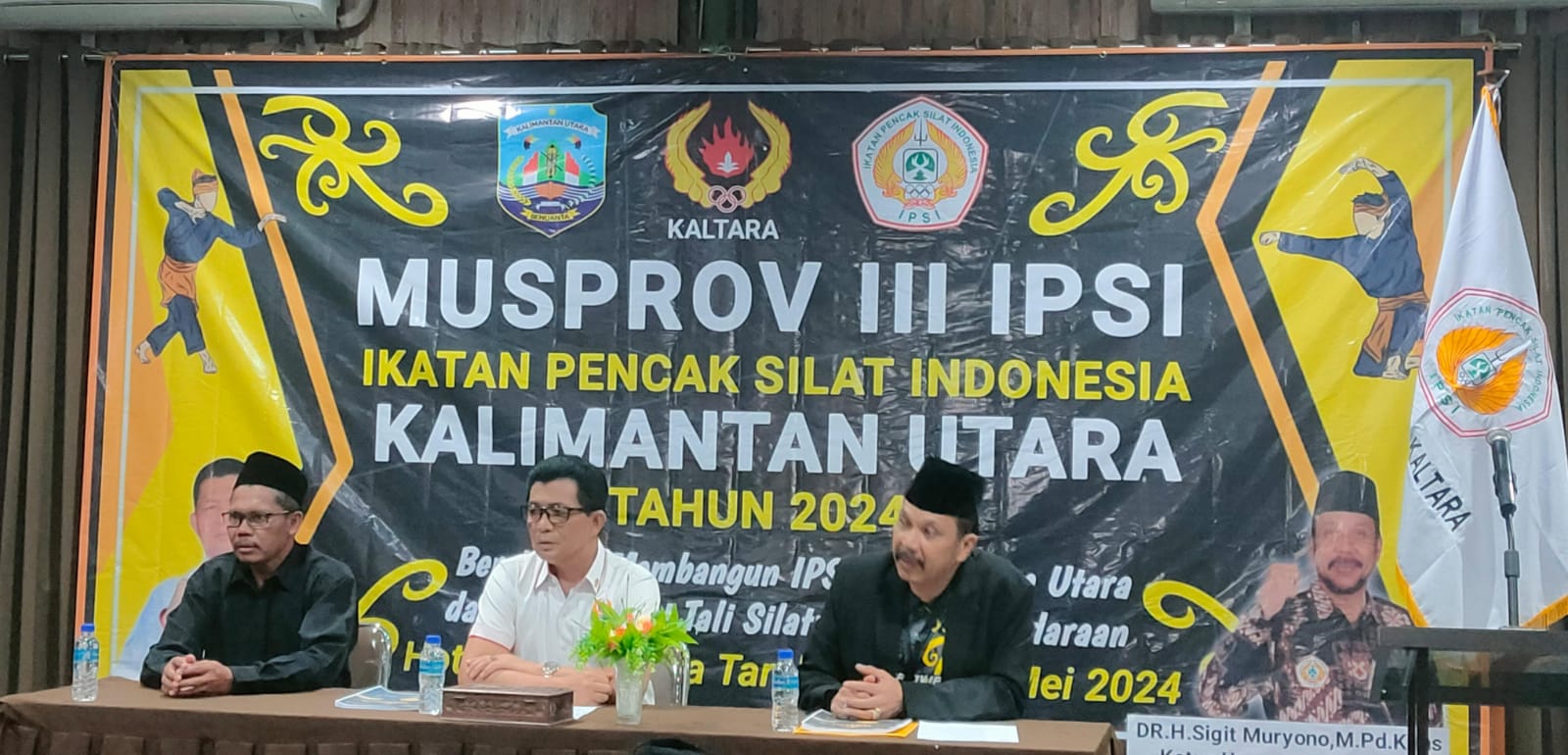 TARAKAN, TerasKaltara.id – Musyawarah Provinsi (Musprov) ke III Tahun 2024 Pengprov Ikatan Pencak Silat Indonesia (IPSI) Kaltara dihadiri dan dibuka Ketua Komite Olahraga Nasional Indonesia (KONI) Kaltara, Muhammad Nasir pada Jumat (24/5/2024) malam.