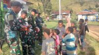 Satgas Yonif 614/RJP Berbagi Makanan Ringan untuk Anak-Anak Papua Pegunungan