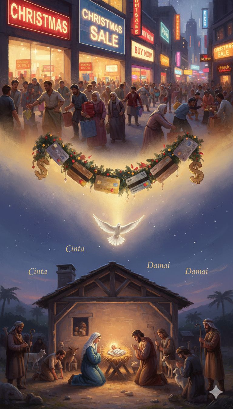 Natal yang dahulu berakar pada doa, kebersamaan, dan rasa syukur kini perlahan kehilangan makna sejatinya. Di tengah gemerlap lampu dan hiruk-pikuk pesta, manusia modern kerap terjebak dalam euforia lahiriah yang menutupi keheningan batin. Hadiah, dekorasi, dan busana baru menjadi pusat perhatian, sementara hati yang seharusnya menjadi palungan bagi Sang Damai justru dibiarkan kosong.