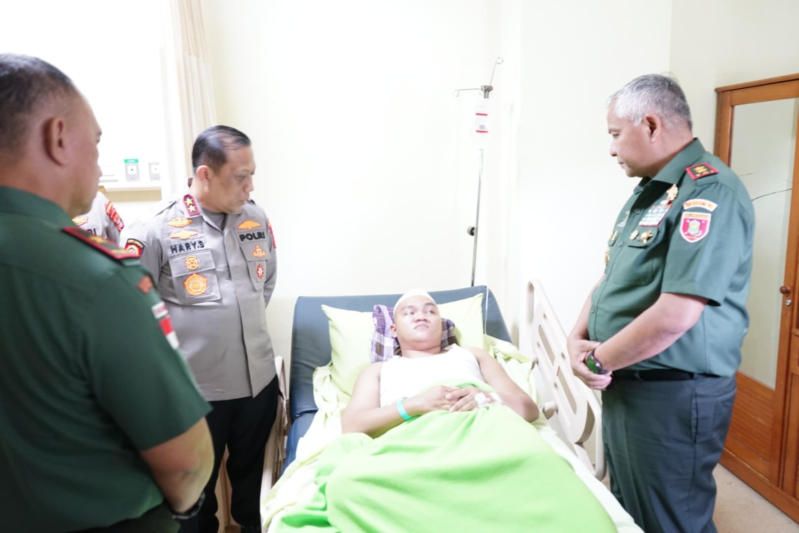 TARAKAN,TerasKaltara.id– Pangdam VI Mulawarman, Mayjend TNI Rudy Rachmat Nugraha bersama Kapolda Kaltara, Irjen Pol Hary Sudwijanto menjenguk salah satu korban pengeroyokan oknum TNI yang sedang dalam perawatan medis, Selasa (25/2/2025).