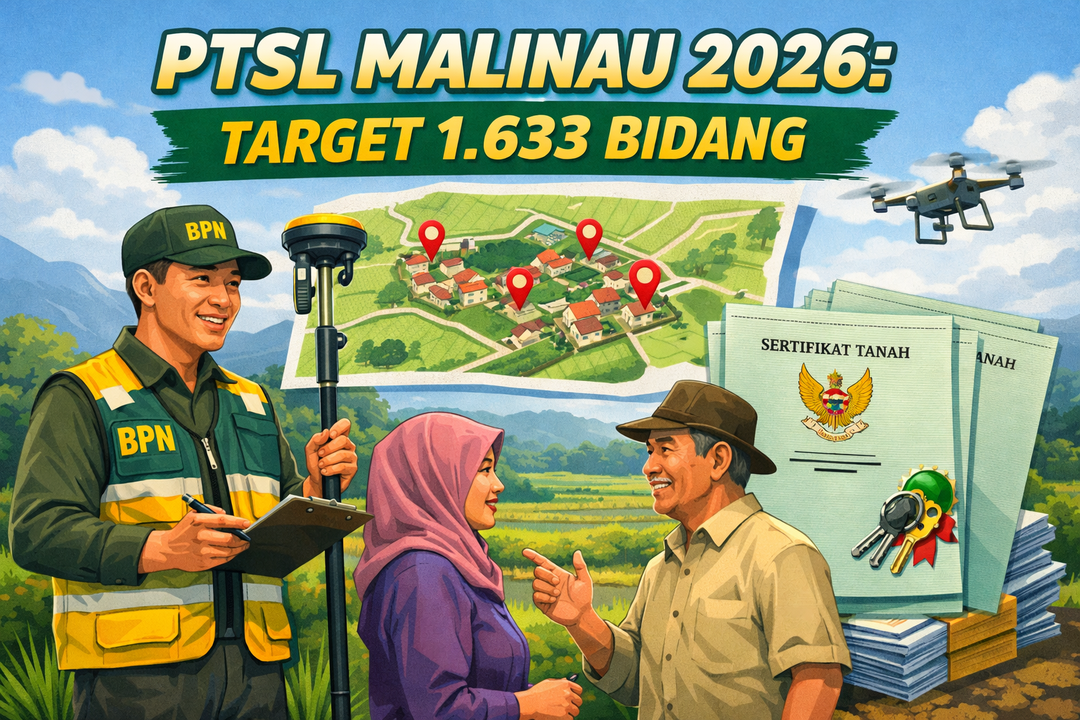 TERASKALTARA.ID, MALINAU – Kuota Program Pendaftaran Tanah Sistematis Lengkap (PTSL) di Kabupaten Malinau tahun 2026 melonjak signifikan hampir dua kali lipat dibandingkan tahun 2025 yang hanya berjumlah 850 bidang. Tahun ini, Badan Pertanahan Nasional (BPN) Kabupaten Malinau menargetkan sebanyak 1.633 bidang tanah untuk disertifikatkan.