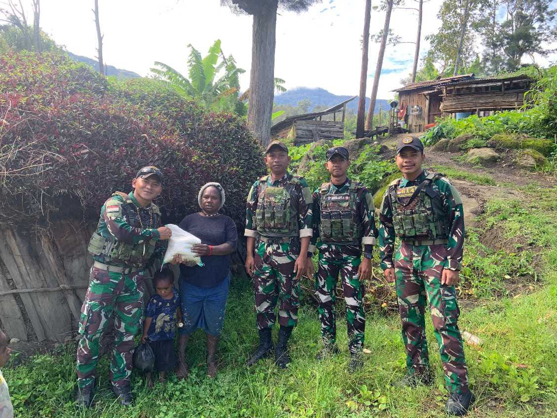 LANNY JAYA, TerasKaltara.id – Personel Satgas Yonif 614 Raja Pandita (RJP) Pos Pirime melaksanakan anjangsana dan berbagi kebahagiaan dengan membagikan sembako kepada masyarakat Kampung Ekanom, Distrik Pirime, Kabupaten Lanny Jaya, Papua Pegunungan, Kamis (06/02/2025).