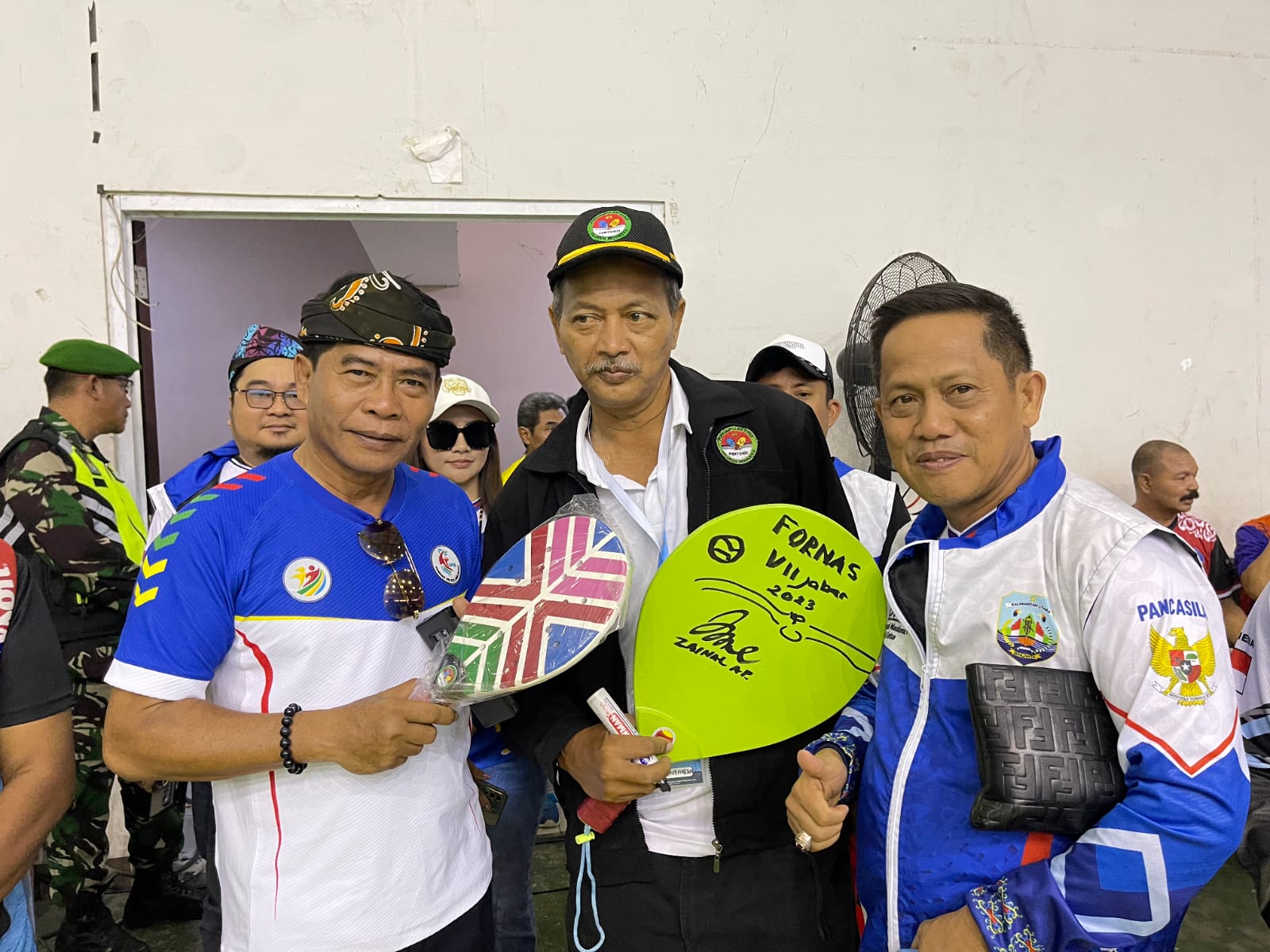 Hari pertama pelaksanaan, tiba di lokasi salah satu venue, Gubernur Zainal Paliwang mendatangi atlet Street Soccer asal Kaltara yang sedang bertanding di kawasan GOR si Jalak Harupat, Senin (3/7/2023).