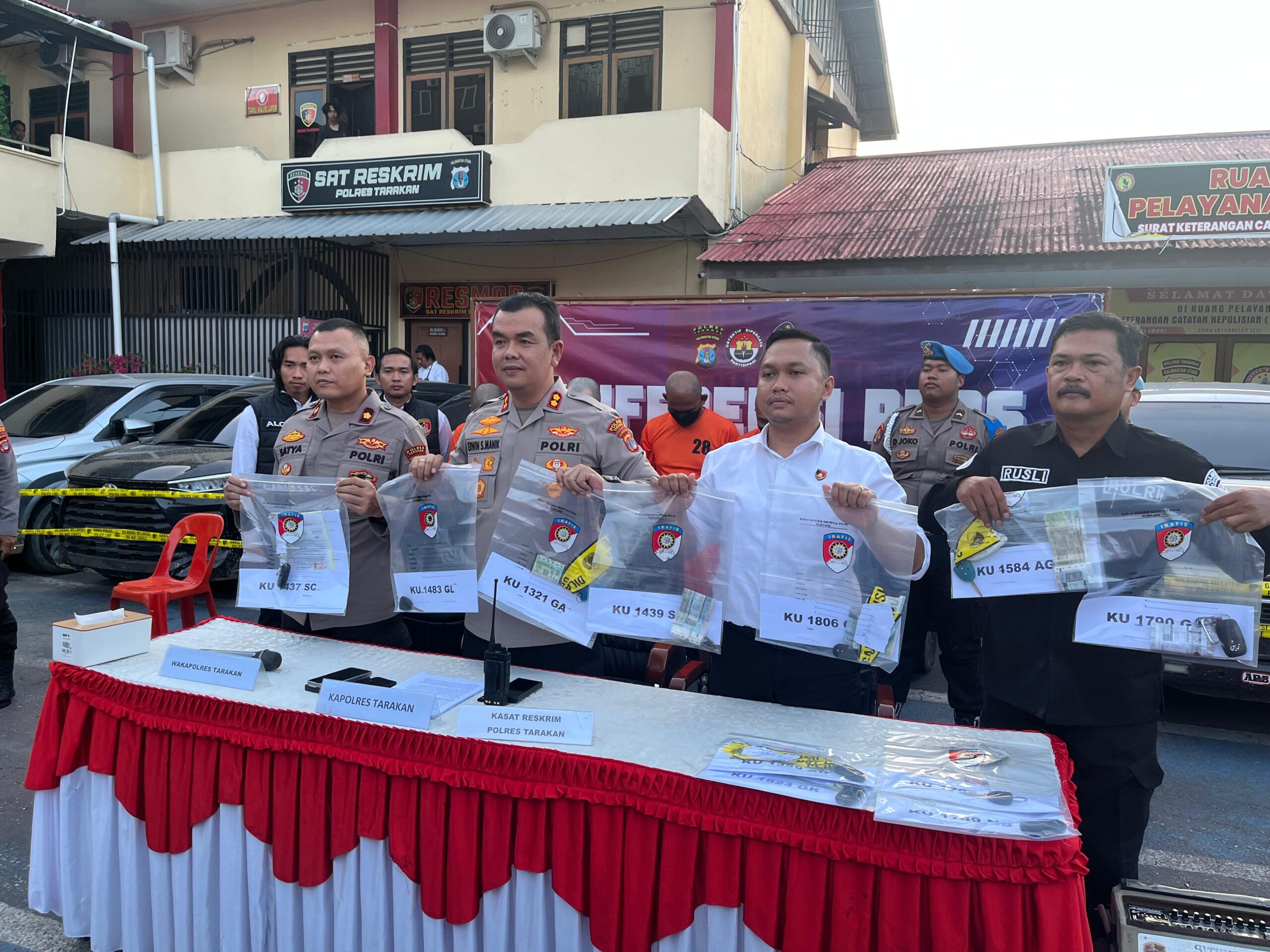 Tim Opsnal Polres Tarakan lebih dulu menangkap RK dan FK pada Rabu, 3 Desember 2025 di Tarakan. Sedangkan JL dan BR ditangkap pada 6 Desember 2025 di Malinau setelah polisi melakukan penyisiran kendaraan hasil kejahatan.