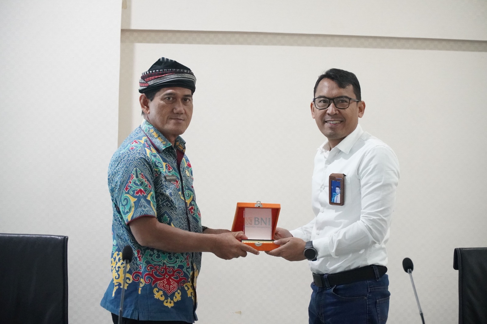 SOSIALISASI : Kepala Bagian Pembinaan dan Advokasi Pengadaan Barang dan Jasa Biro Pengadaan Barang dan Jasa Setprov Kaltara, Imam Pratikno menerima kenang-kenangan pada acara Sosialisasi Cash Management, EDC & QRIS BNI.