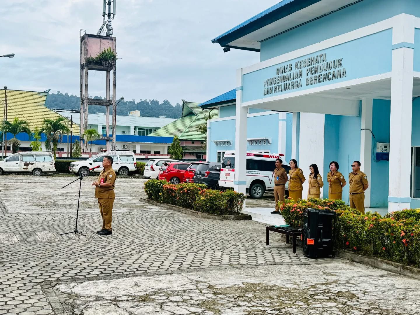 Apel yang berlangsung di halaman Kantor Dinas Kesehatan tersebut diikuti seluruh aparatur sipil negara (ASN) dan tenaga kesehatan. Dalam arahannya, Sekda menyampaikan apresiasi atas dedikasi jajaran Dinas Kesehatan yang selama ini menjadi garda terdepan pelayanan publik, khususnya di sektor kesehatan.