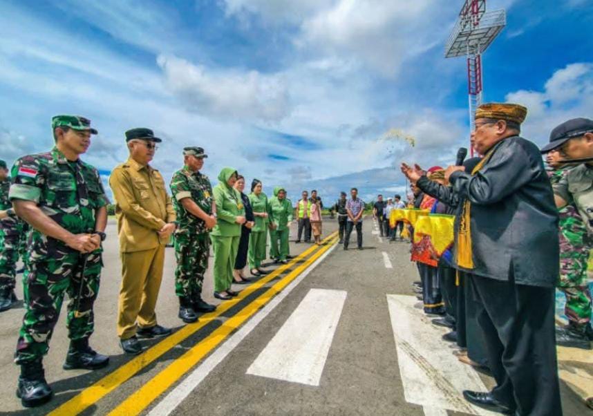 Bupati Wempi menyampaikan ucapan selamat datang kepada Pangdam dan rombongan serta menekankan bahwa tradisi penyambutan adat menjadi simbol persaudaraan masyarakat Malinau.