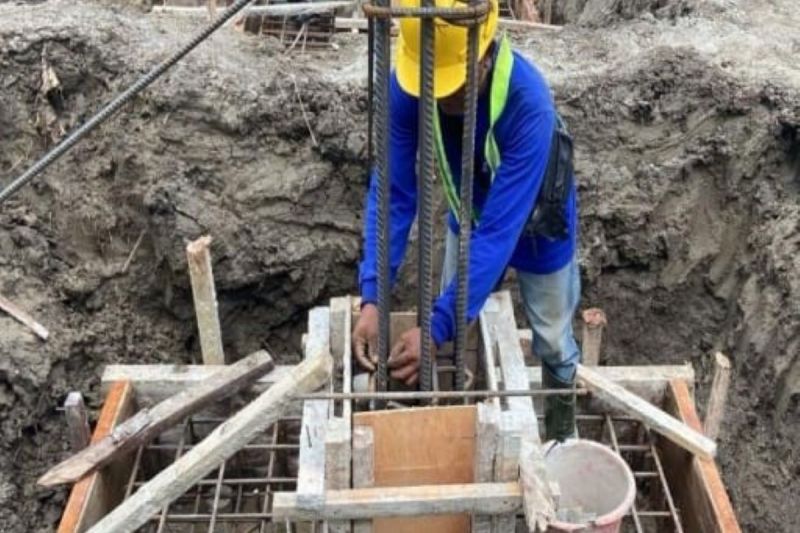 Sebagian lokasi masih berada pada tahap pekerjaan pondasi, yang desain dan metodenya disesuaikan dengan karakteristik tanah setempat, sementara beberapa lokasi lainnya telah memasuki pekerjaan struktur atas, seperti kolom, balok, serta pelat lantai dua.